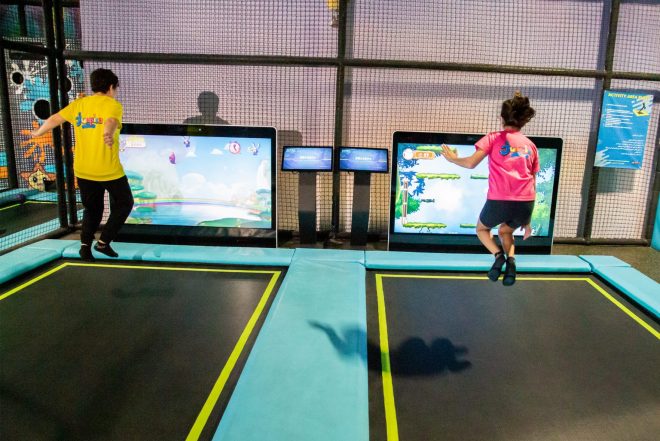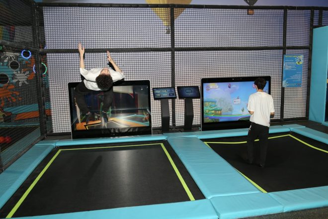 But the fun doesn’t stop there! With interactive game screens, trampoline activities become even more engaging. These screens display various games and challenges that you can interact with while bouncing on the trampoline. From virtual obstacle courses to target-hitting challenges, these games add an extra layer of excitement to your jumping experience.